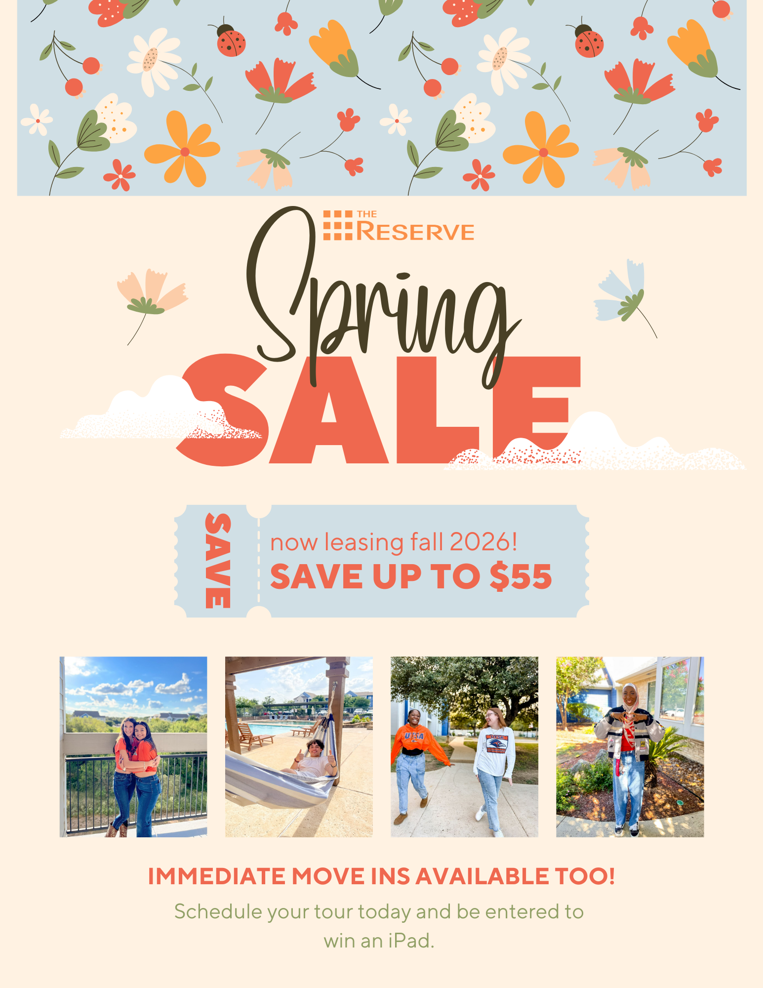 With the second largest H-E-B right around the corner, and Six Flags in our backyard, The Reserve’s location offers a vast variety of places to create memories at. Of course, we always recommend eating dinner on the Riverwalk or learning about the history of The Alamo.
